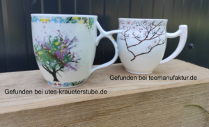 Becher mit zwei Henkeln. Ermöglicht symmetrisches Greifen eines schweren vollen Bechers. Verhindert den Kontakt der Finger mit der heißen Außenwand des Bechers. Das Gewicht des vollen Bechers muss nicht im Arm oder Rücken ausbalanciert werden. Sichere Bewegung mit Becher in den Händen möglich. Jede Sitzposition mit dem Becher in der Hand ist möglich. Entspannte Schulterhaltung.